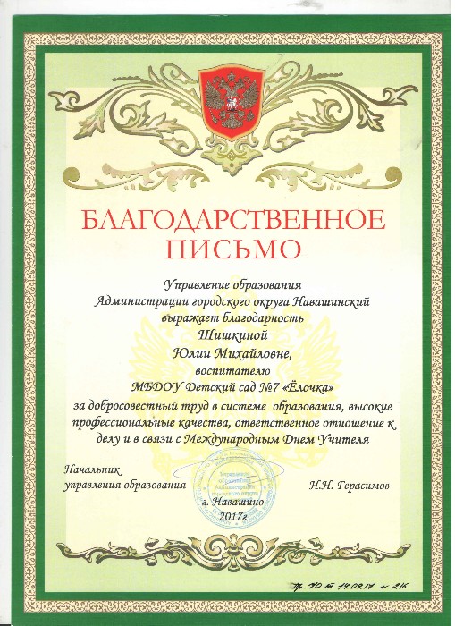 Благодарственное письмо