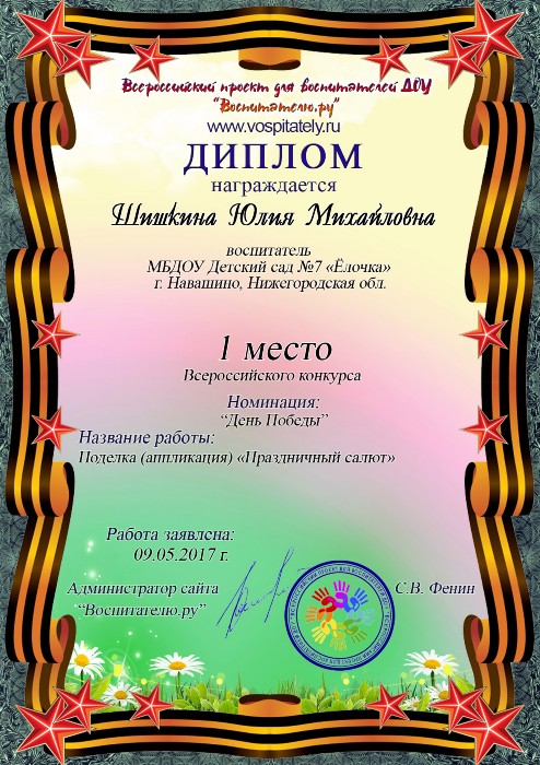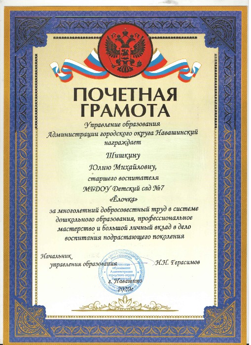 Почетная грамота Управления образования Администрации