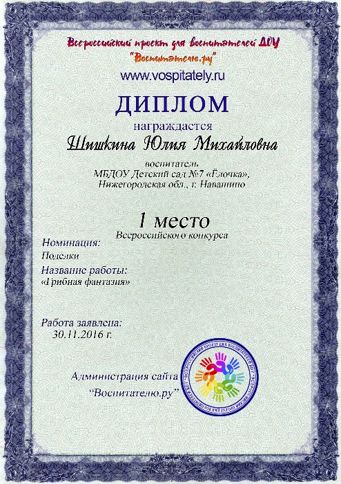 Почетная грамота Управления образования Администрации